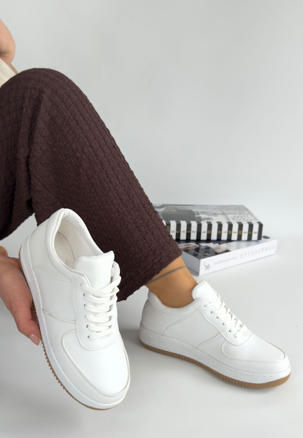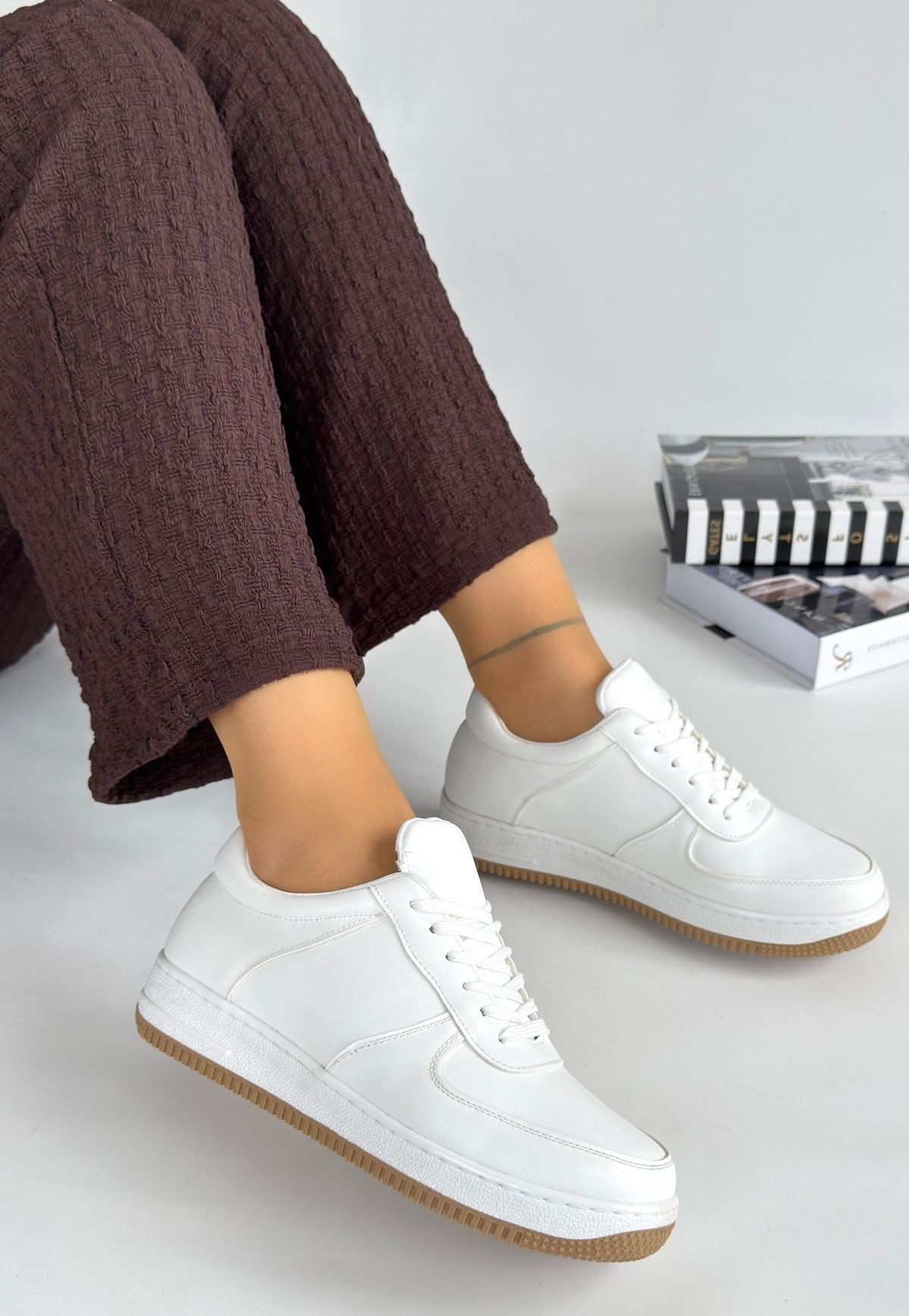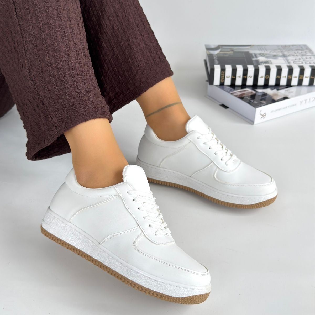 Ceyyan Beyaz Cilt Bağcıklı Spor Ayakkabı
