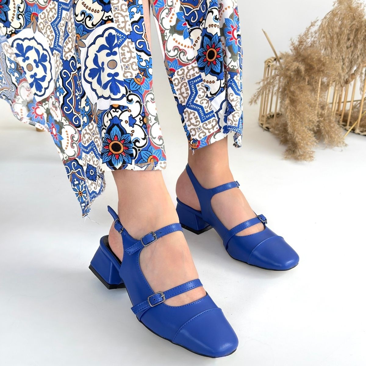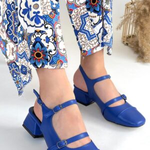 Doran Mavi Cilt Topuklu Ayakkabı