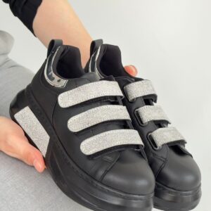 Elika Siyah Cilt Simli Cırt Cırtlı Spor Ayakkabı