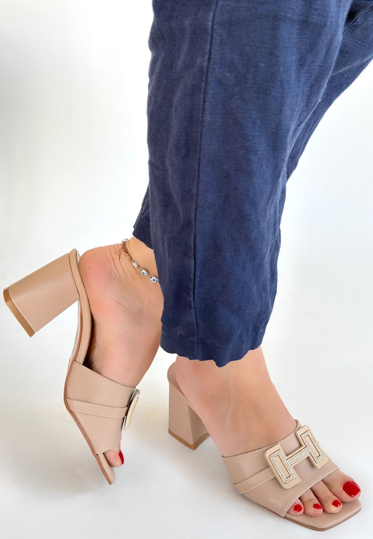 Erew Bej Cilt Topuklu Terlik