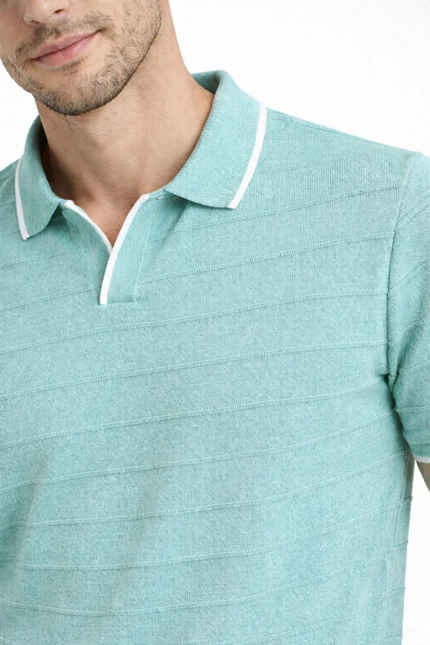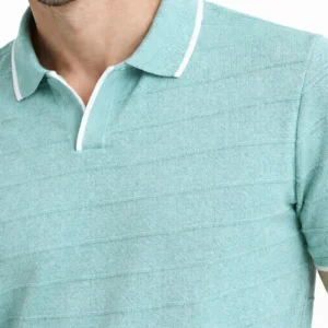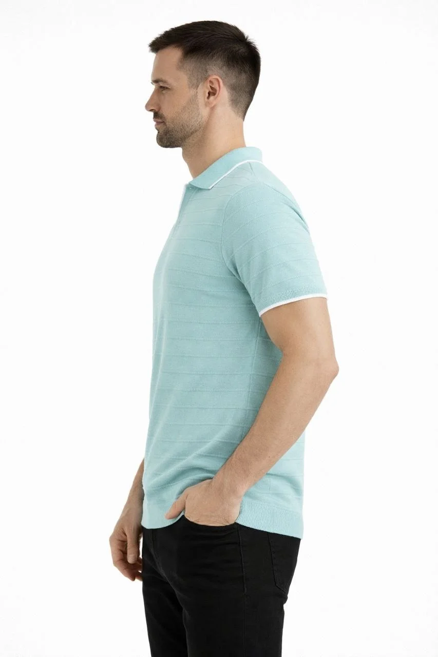Erkek 2’li Paket Triko Yakalı Düğmesiz Açık Yaka Fitilli Kısa Kollu Regular Fit Tişört – Lacivert & Mint Yeşili