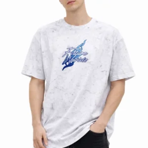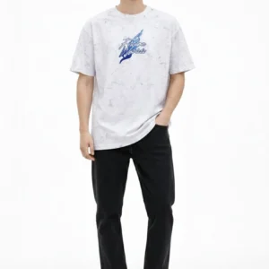 Erkek Asit Yıkamalı Oversize Tişört Future Worlds Baskılı Bisiklet Yaka Kısa Kollu Streetwear %100 Pamuk Street Style T-Shirt – Beyaz
