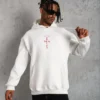 Erkek Baskılı Üç İplik Kapüşonlu Oversize Sweatshirt – Beyaz