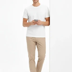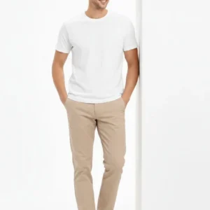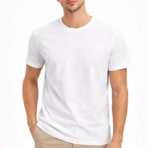 Erkek Bisiklet Yaka Tişört Regular Kalıp Basic Pamuklu Günlük Kullanım T-shirt – Beyaz