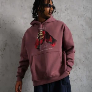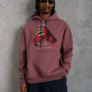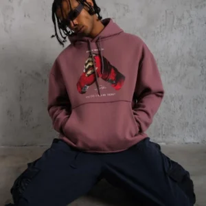 Erkek Eldiven Baskılı Kapüşonlu Sweat – Gül Kurusu