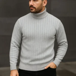 Erkek Fitilli Triko Kazak 3’lÜ Set Beyaz Gri Siyah Regular Balıkcı Yaka Tam Boğazlı Triko Seti Modeli Kazak