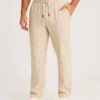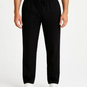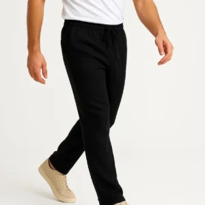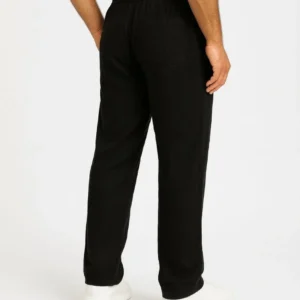 Erkek Keten Pantolon – Cepli, Beli Lastikli ve Bağcıklı, Nefes Alan Rahat Kalıp, Yazlık ve Baharlık Günlük Giyim, Şık & Konforlu Boru Paça Model – Siyah