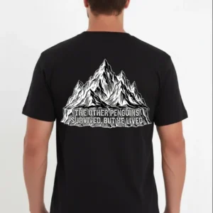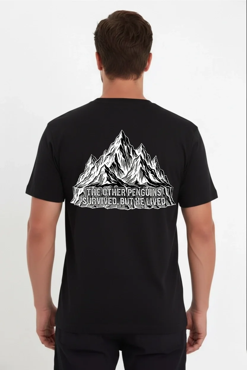 Erkek Nihilist Penguen Temalı Oversize Bisiklet Yaka Tişört – Siyah