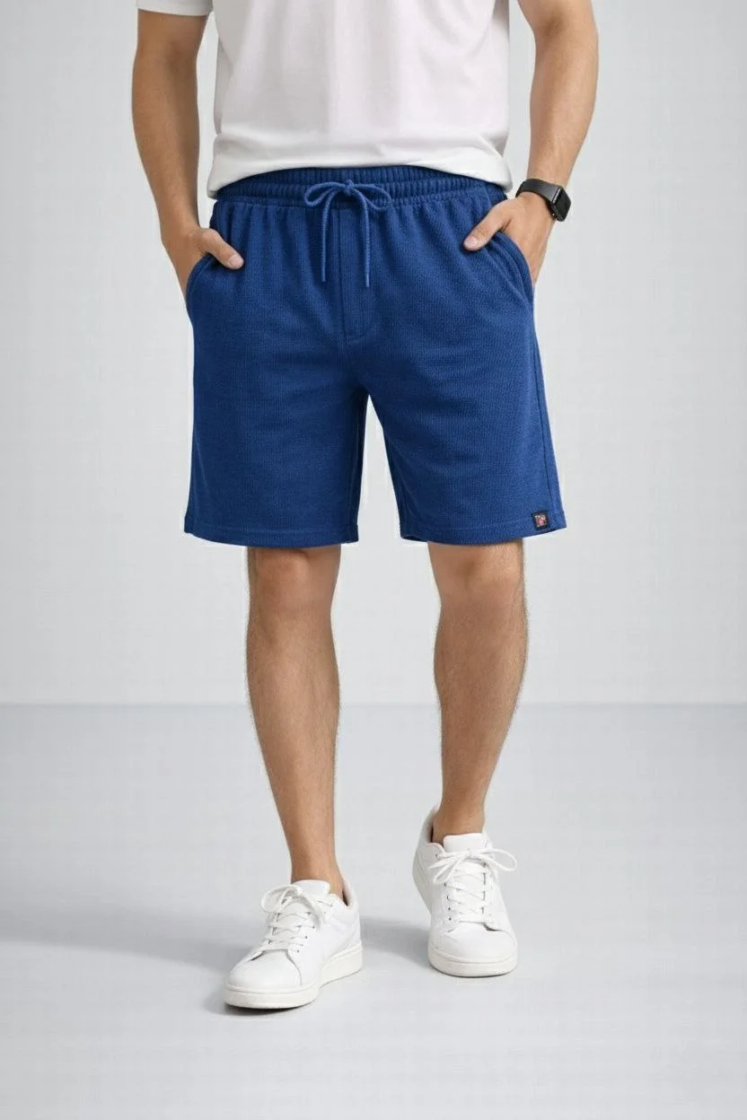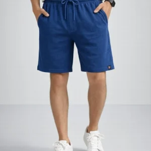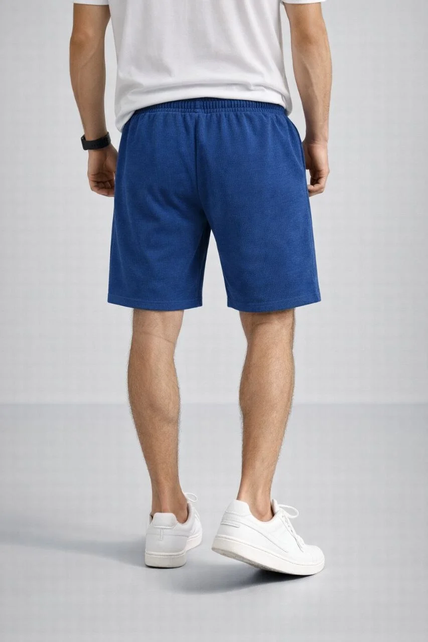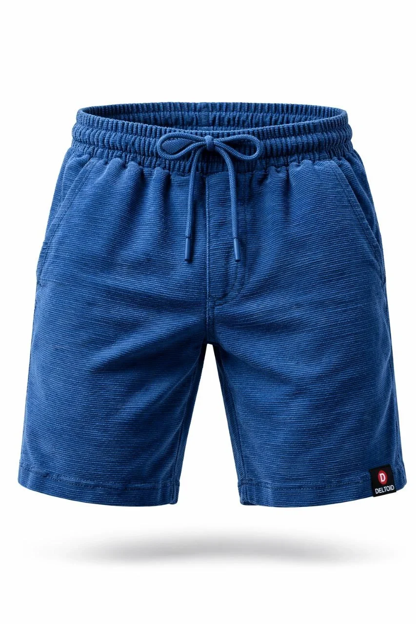 Erkek otoban Dokuma Şort Beli Lastikli Bağcıklı, Cepli, Rahat Kesim Günlük Yazlık Şort – İndigo