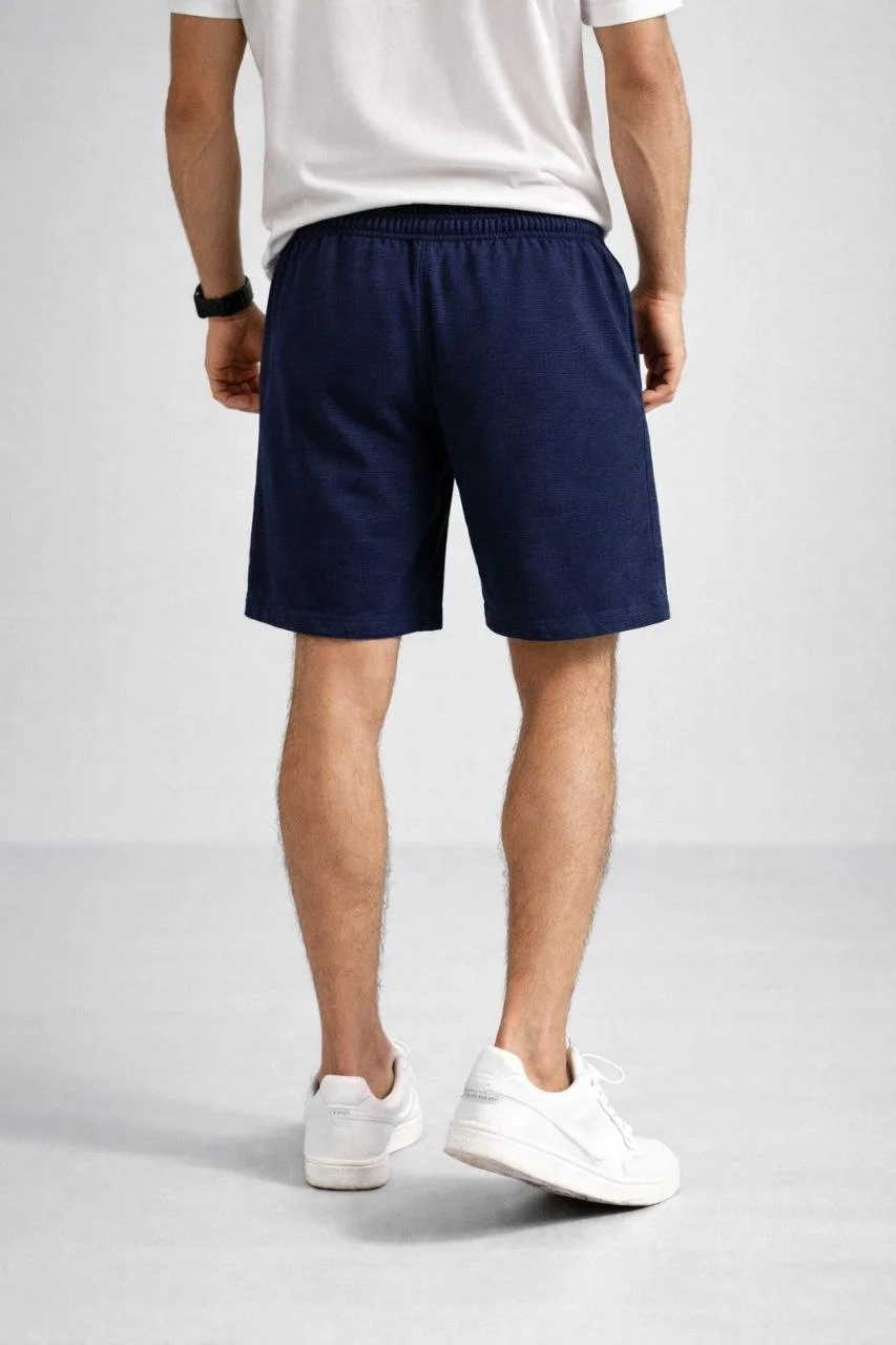 Erkek otoban Dokuma Şort Beli Lastikli Bağcıklı, Cepli, Rahat Kesim Günlük Yazlık Şort – Lacivert