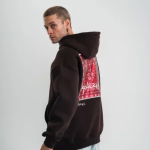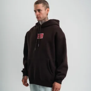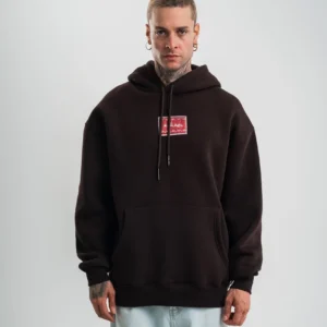 Erkek Premium Nakışlı Kapşonlu Sweatshirt Double Oversize Üç İplik Pamuklu – Siyah