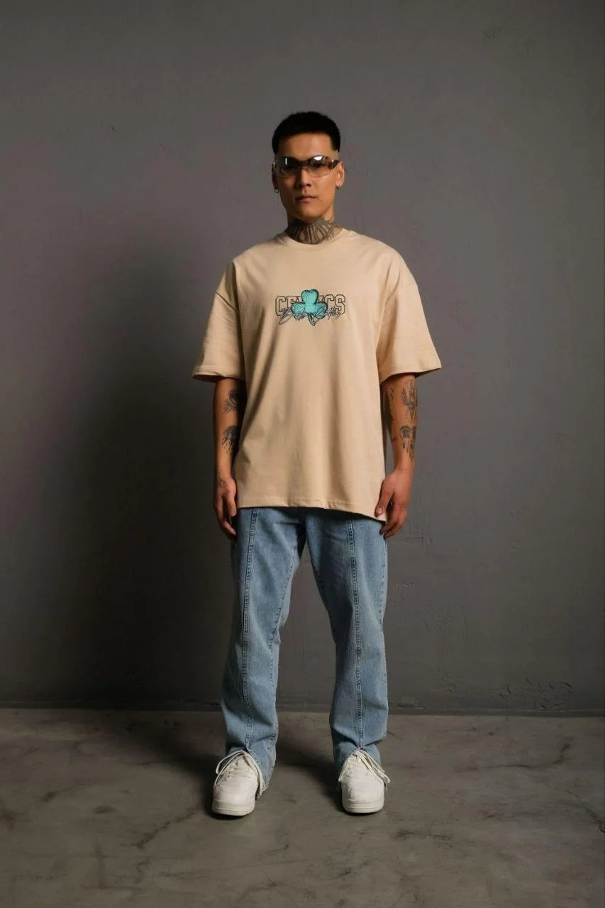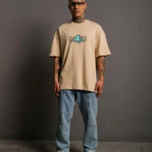 Erkek Sırt Baskılı T-shirt – Bej