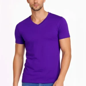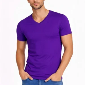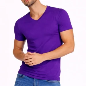 Erkek T-Shirt V Yaka Slim Fit dar kesim Likralı Tişört Günlük Basic Body – Mor