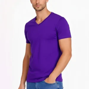Erkek T-Shirt V Yaka Slim Fit dar kesim Likralı Tişört Günlük Basic Body – Mor