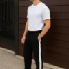 | Alt Detay | Yandan Parçalı Cizgili Pantalon |