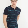 Erkek Yakalı Slim Fit Pike Çizgili T-Shirt – Siyah