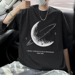 Erkekler için Siyah Tişört Grafik Genç Emo Vintage Gotik Rahat Büyük Beden Kısa Kollu Tişört Giysi Üst- Siyah