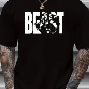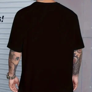 Eşsiz Baskı Tasarımlı Şık Büyük Beden Erkek Tişörtü – Rahat Polyester, Makinede Yıkanabilir, Yuvarlak Yaka – Her Mevsim İçin Mükemmel – Siyah