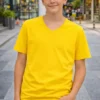 Genç Kız Çocuk V Yaka Tişört Yazlık Model Günlük Basic Body – Toz Pembe