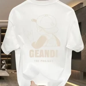 Geniş Kesim Pamuklu Tişört – “GANDHI The Project” Baskılı, Beyaz, Rahat Kesim, Kısa Kollu, Günlük Kıyafet, Her Gün Giyilebilecek Tişört- Beyaz