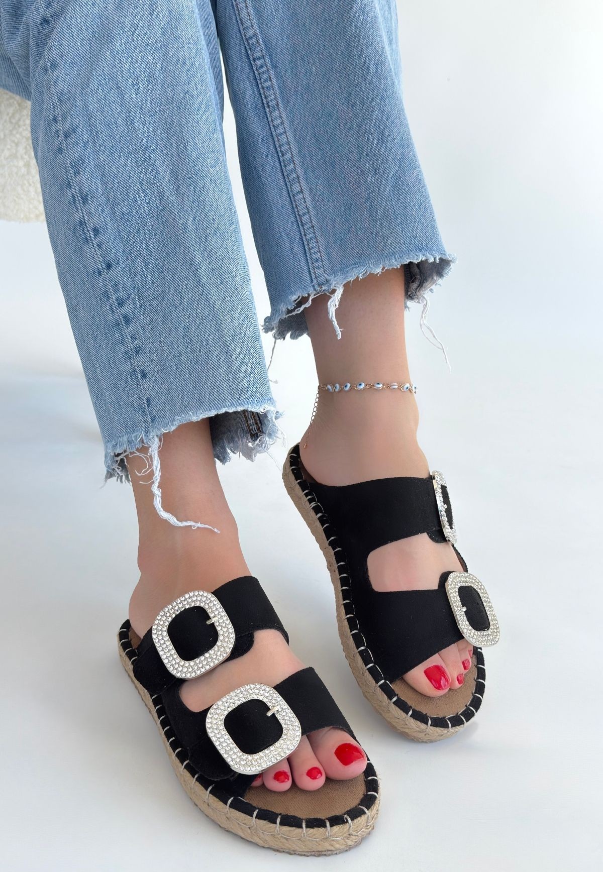 Hertas Siyah Nubuk Tokalı Terlik