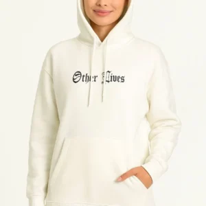 Kadın Kapşonlu Sweatshirt – Oversize Üç İplik Şardonlu Hoodie, “Other Lives” Ön & Arka Baskılı, Kanguru Cepli, Kışlık Rahat Günlük Stil – Beyaz