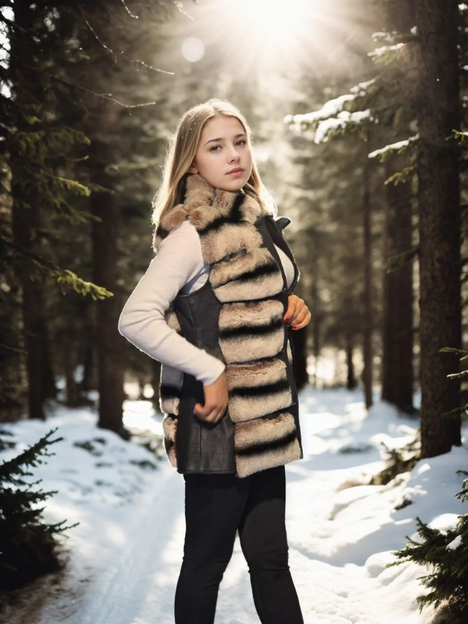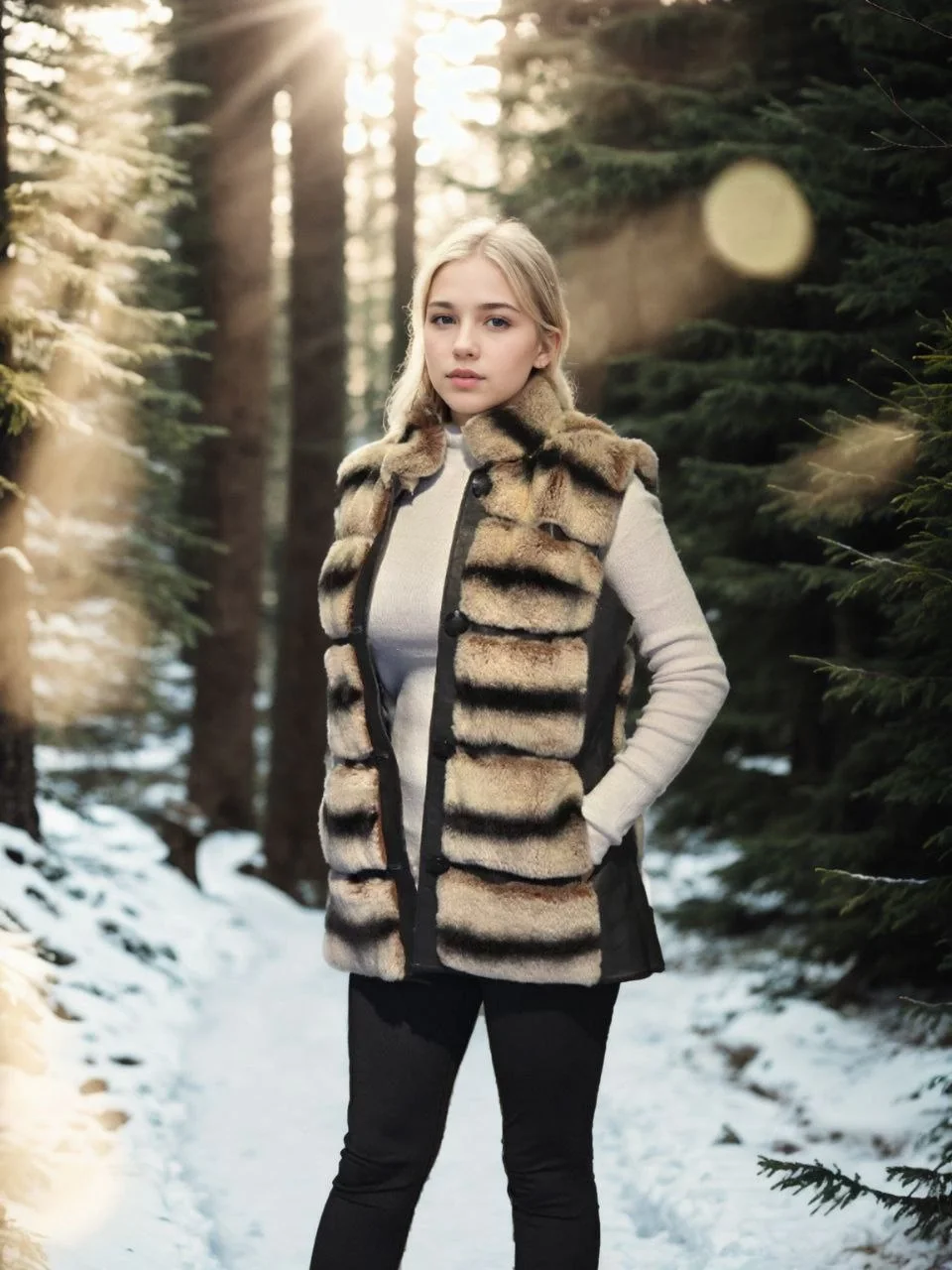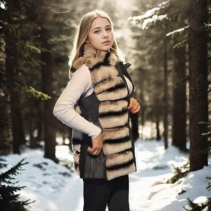 Kadın Kolsuz Hakiki Deri Kürk – Siyah