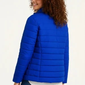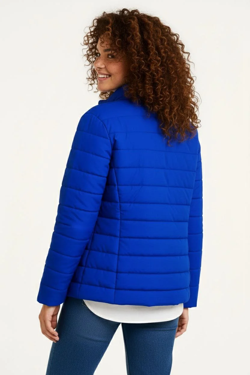 Kadın Mikro Su İtici Kapitone Baskılı Astarlı Fermuarlı Bomber Mont – Saks Mavisi