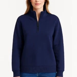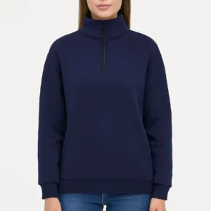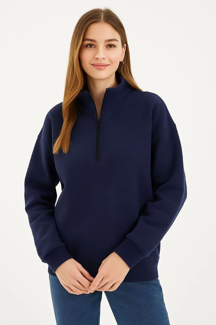Kadın Üç İplik Dık Yaka Yarım Fermuarlı SweatShirt – Lacivert