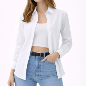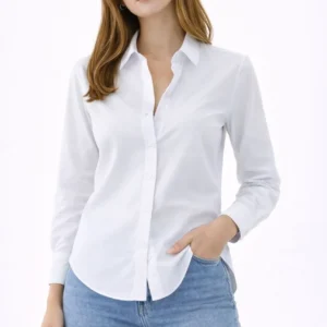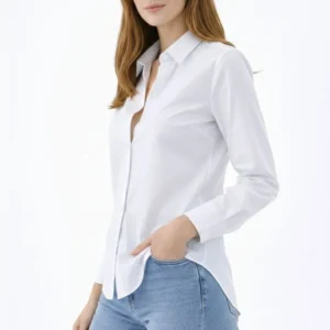 Kadın Uzun Kollu Gömlek Düğmeli Klasik Yaka Günlük ve Ofis Şıklığına uygun – Beyaz