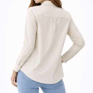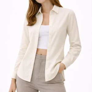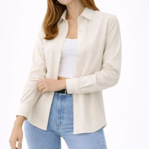 Kadın Uzun Kollu Gömlek Düğmeli Klasik Yaka Günlük ve Ofis Şıklığına uygun – Krem