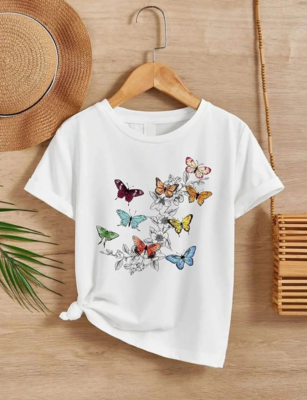 Kız Çocuk Bisiklet Yaka Baskılı T-Shirt – Beyaz