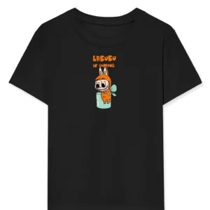 Kız Labubu Çocuk Baskılı T-Shirt – Siyah