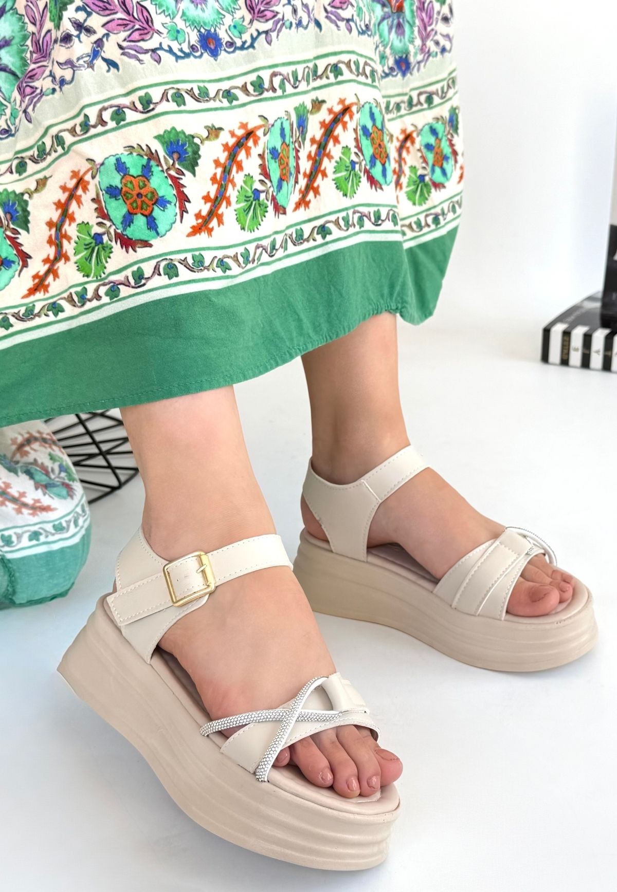 Luno Bej Cilt Kemerli Sandalet