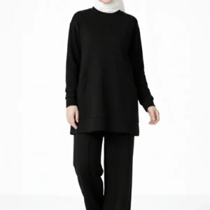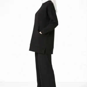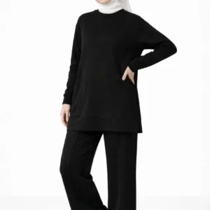 Osy Modal yumuşak dokulu Kumaş Tesettür Cepli Tunik Pantolon Takım – Siyah