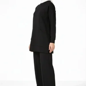 Osy Modal yumuşak dokulu Kumaş Tesettür Cepli Tunik Pantolon Takım – Siyah