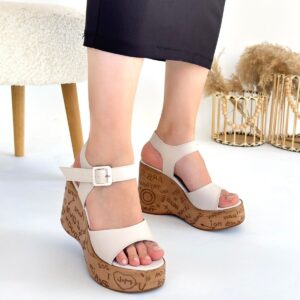 Riboy Bej Cilt Dolgu Topuk Sandalet