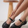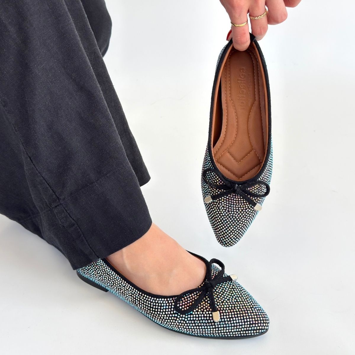 Sarra Siyah Saten İşlemeli Babet Ayakkabı