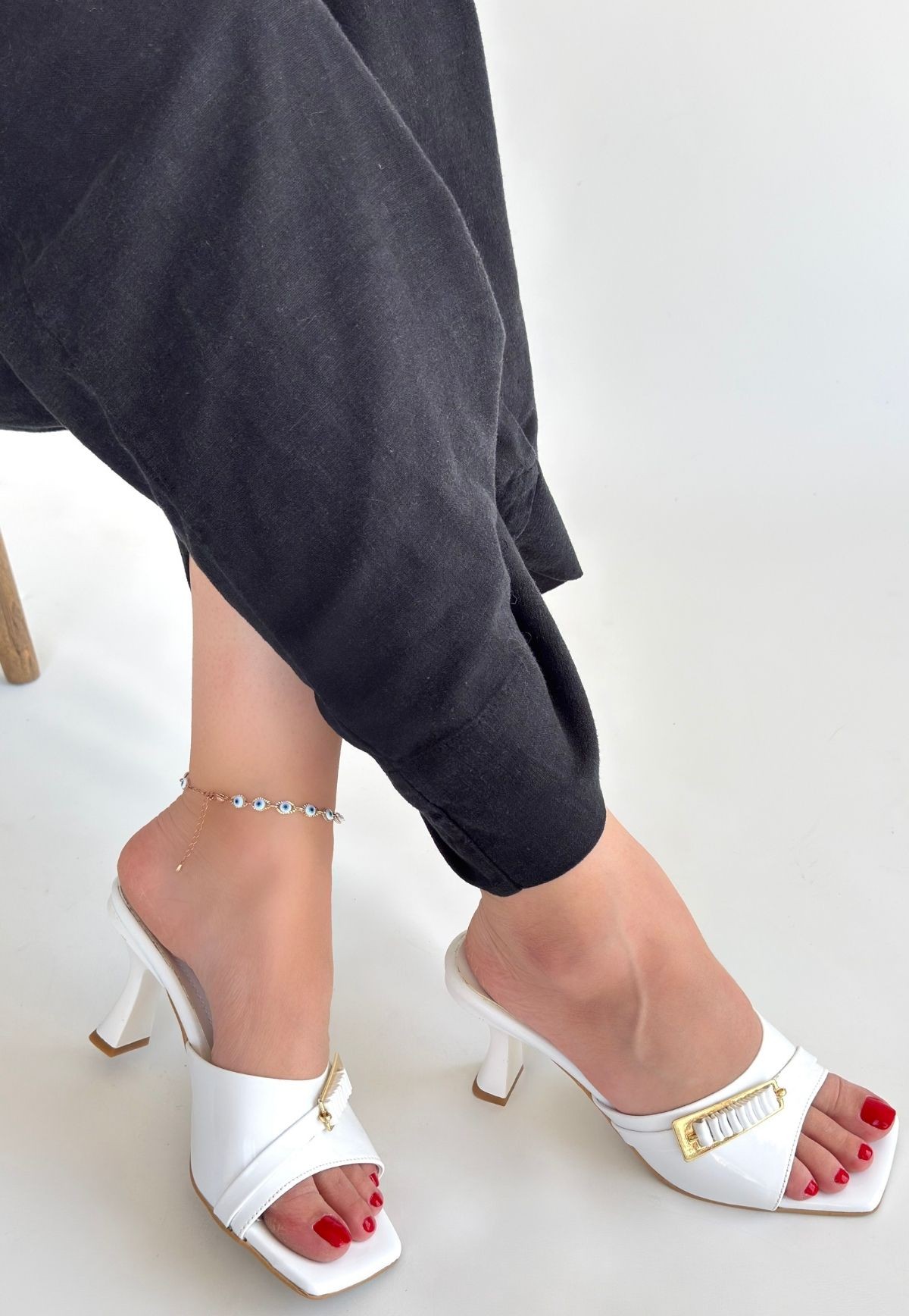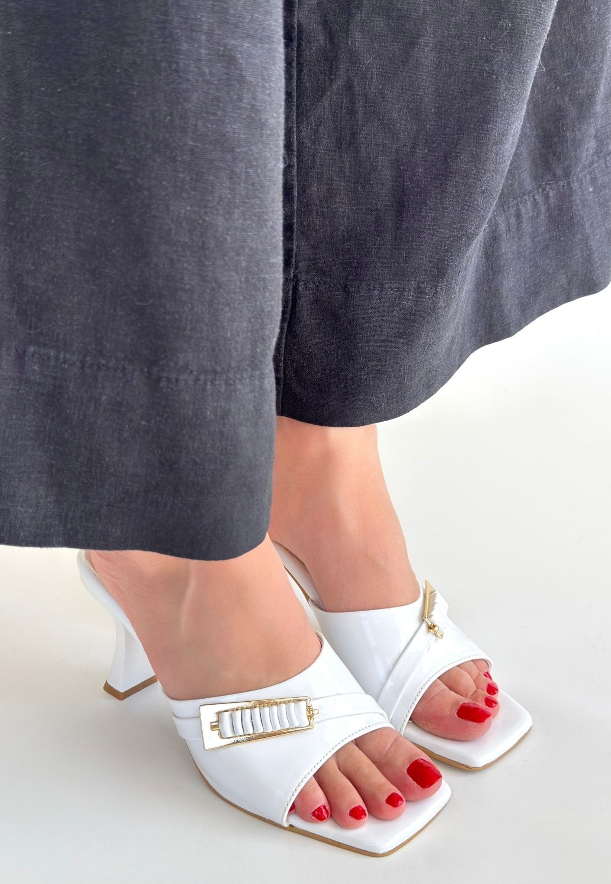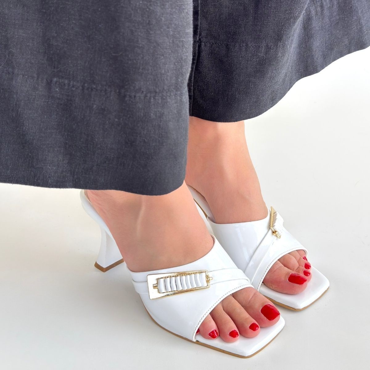 Sief Beyaz Rugan Topuklu Terlik
