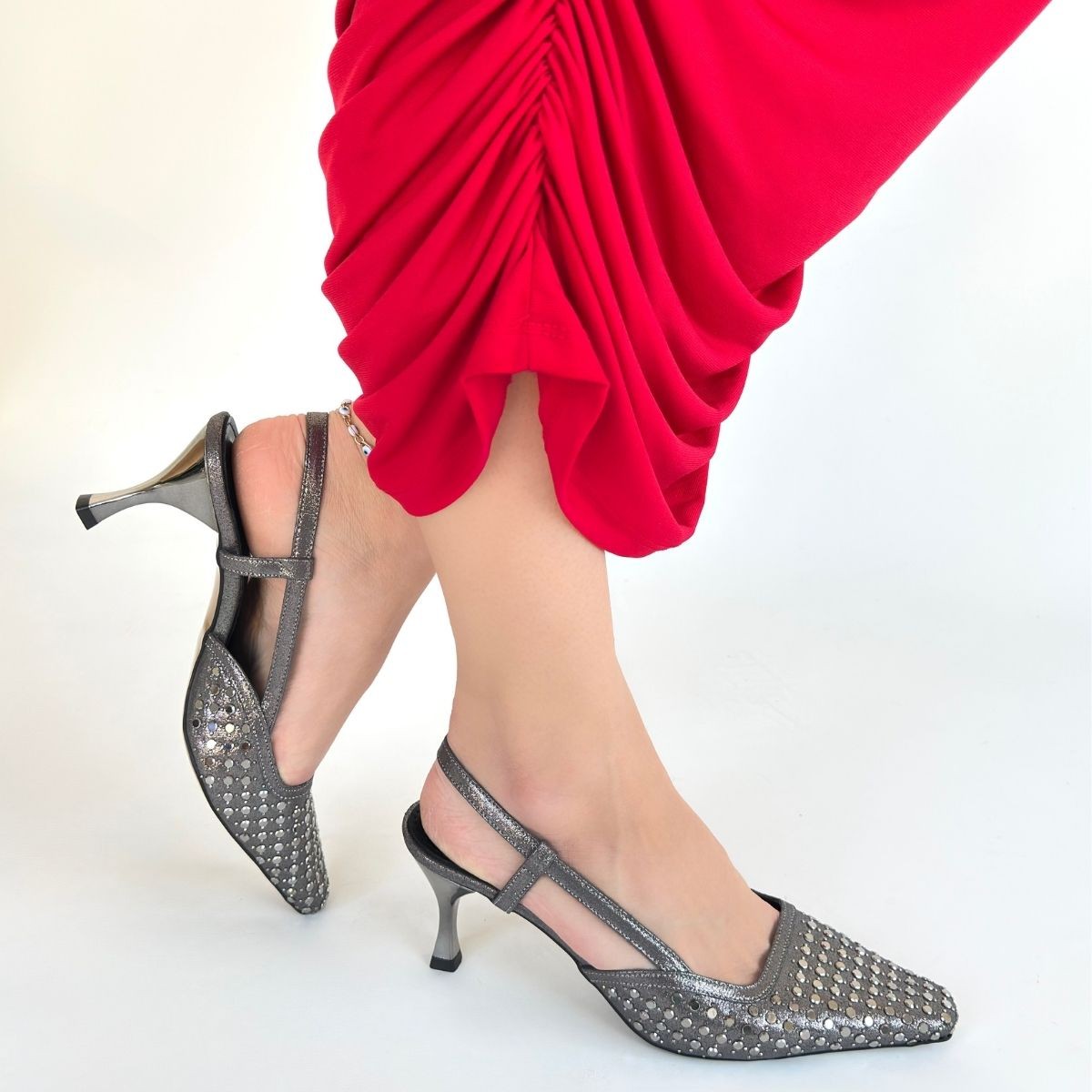 Sione Platin Cilt Topuklu Ayakkabı