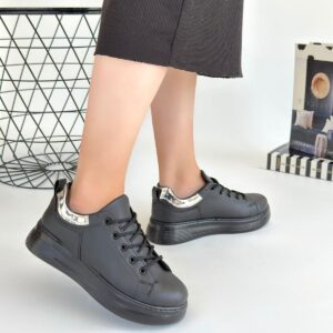 Sofio Siyah Cilt Bağcıklı Spor Ayakkabı