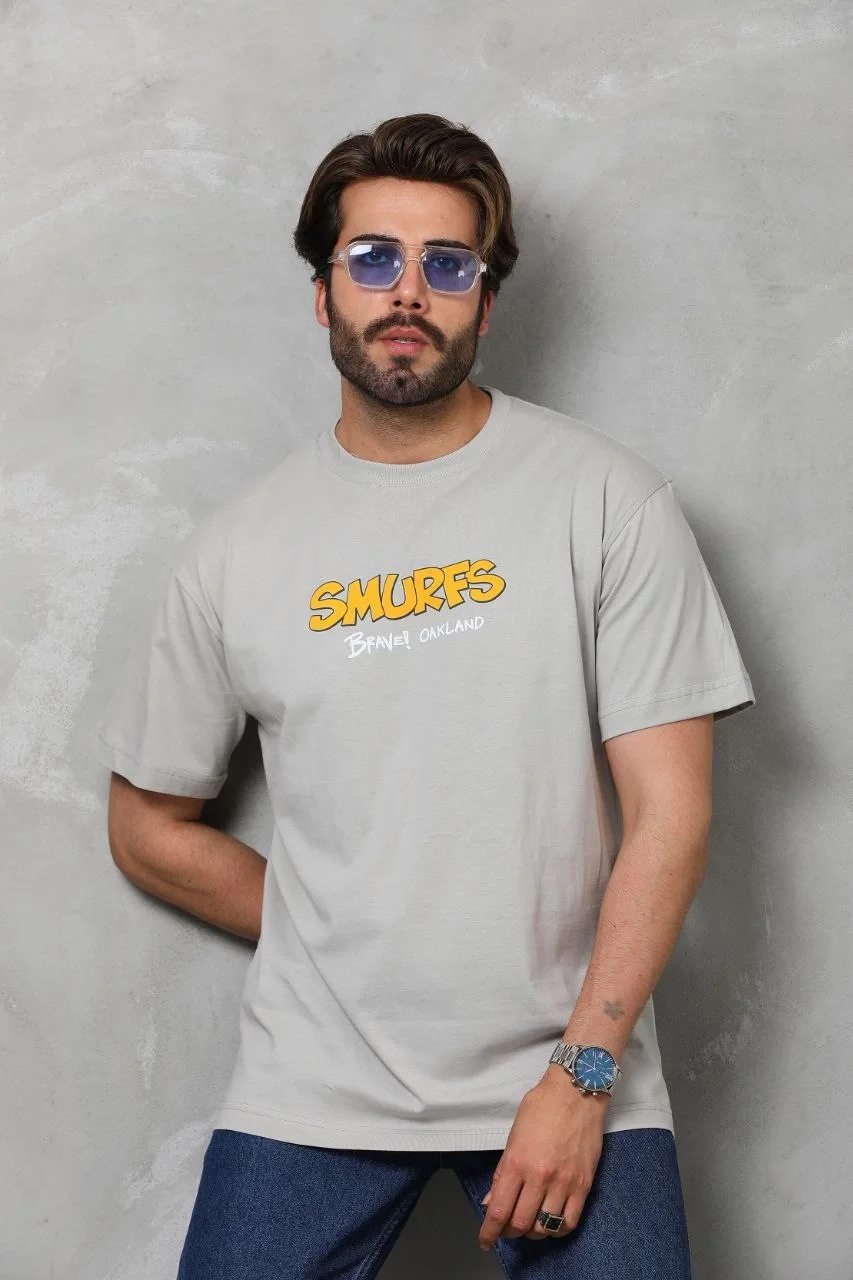 Unisex Basic Bisiklet Yaka Oversize T-Shirt – Gri