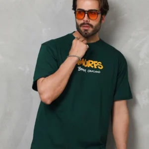 Unisex Basic Bisiklet Yaka Oversize T-Shirt – Yeşil