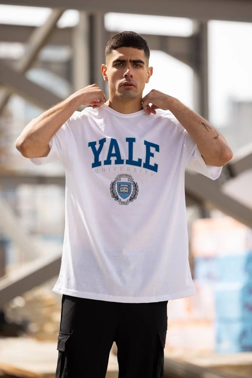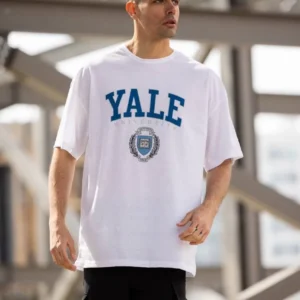 Unisex Bisiklet Yaka Baskılı Oversize T-Shirt – Beyaz