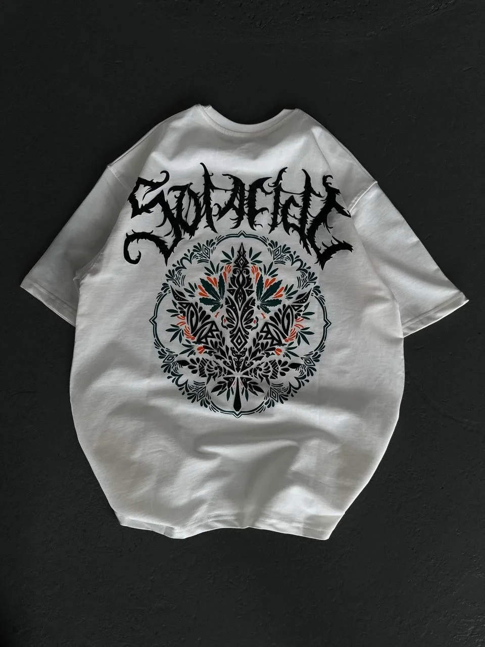 Unisex Bisiklet Yaka Baskılı Oversize T-Shirt – Beyaz