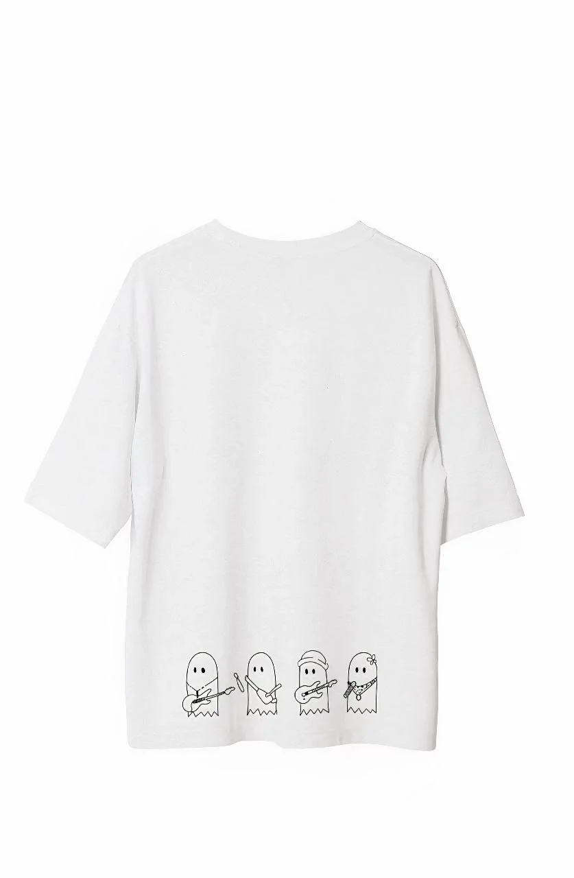 Unisex Bisiklet Yaka Baskılı Oversize T-Shirt – Beyaz