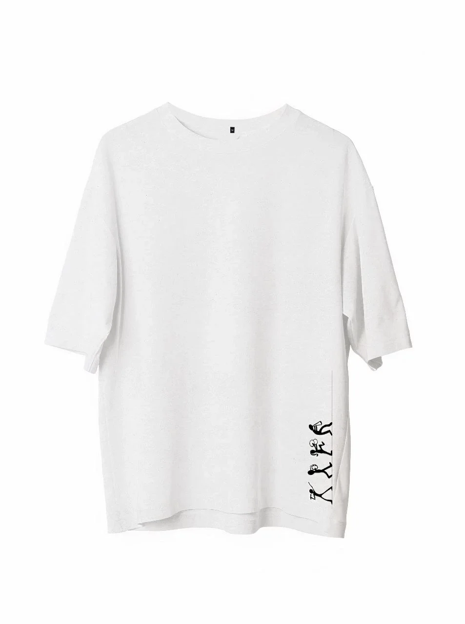 Unisex Bisiklet Yaka Baskılı Oversize T-Shirt – Beyaz