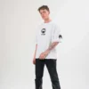 Unisex Bisiklet Yaka Baskılı Oversize T-Shirt – Beyaz