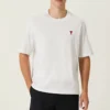Unisex Bisiklet Yaka Baskılı Oversize T-Shirt – Beyaz