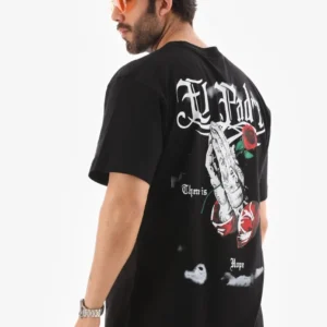 Unisex Bisiklet Yaka Baskılı Oversize T-Shirt – Siyah